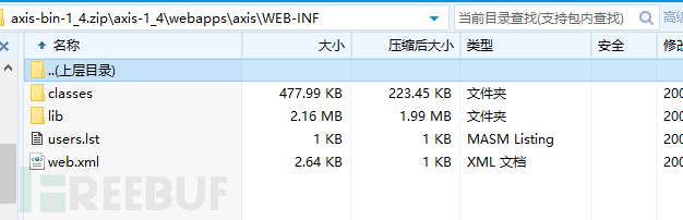 在本地tomcat搭建,可以看到下载下来后的WBE-INF,其中并没有有些文档中写的server-config.wsdd文件