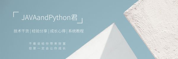 微信公众号【JAVAandPython君】, 专注于Python和JAVA的技术平台。分享JAVA和Python相关的原创系列技术文章、工具资源、精选课程、优质资源、热点资讯、学习资料等。同时也会写一写个人的感想和思考。 在这里你会得到不一样的提升和成长!