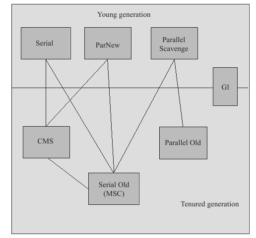 上图展示了7种作用于不同分代的收集器,如果两个收集器之间存在连线,就说明它们可以搭配使用。虚拟机所处的区域,则表示它是属于新生代收集器还是老年代收集器。Hotspot实现了如此多的收集器,正是因为目前并无完美的收集器出现,只是选择对具体应用最适合的收集器。