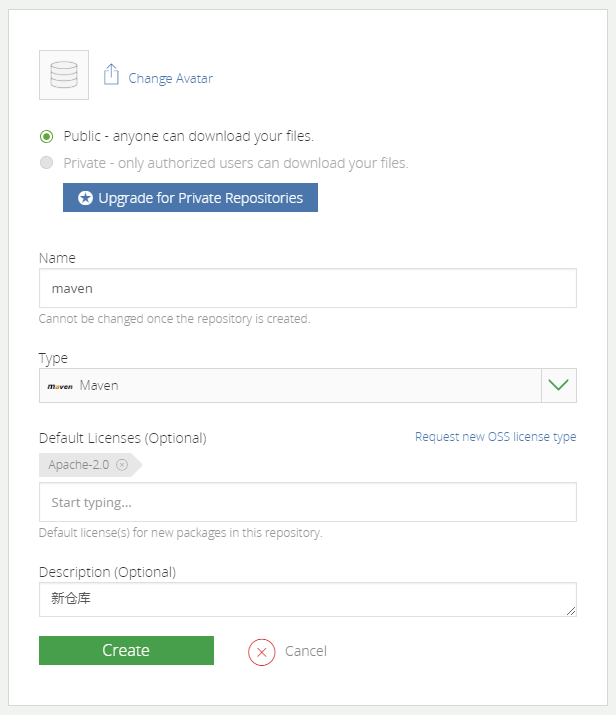 Add New Repository 创建仓库: