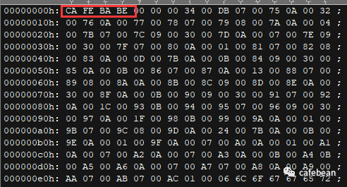 0xCAFEBABE,随随便便打开一个class文件用十六进制编辑器查看,就能看到。