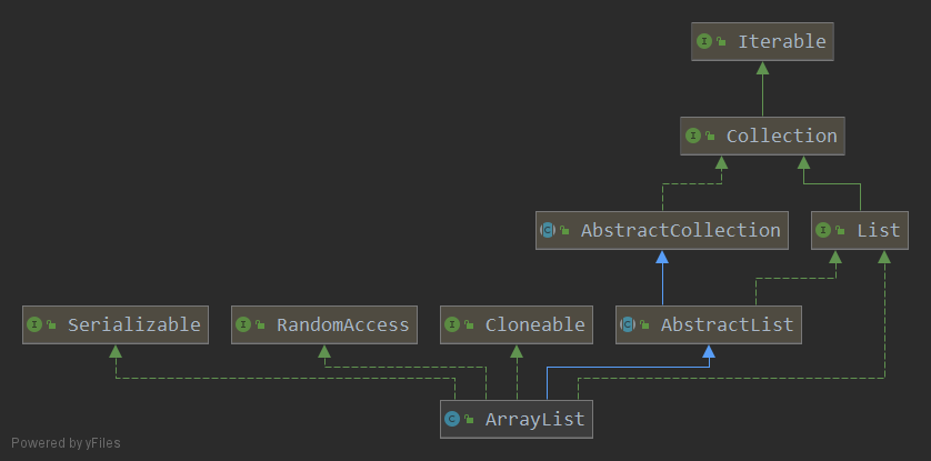 ListItr 类继承 Itr 类,实现 ListIterator 接口,在迭代器的基本方法上,扩充了 List 特有的迭代器方法。