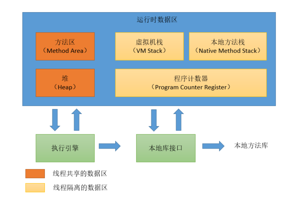 我们都知道,Java代码是要运行在虚拟机上的,而虚拟机在执行Java程序的过程中会把所管理的内存划分为若干个不同的数据区域,这些区域都有各自的用途。 在 《Java虚拟机规范(Java SE 8)》 中描述了JVM运行时内存区域结构如下: