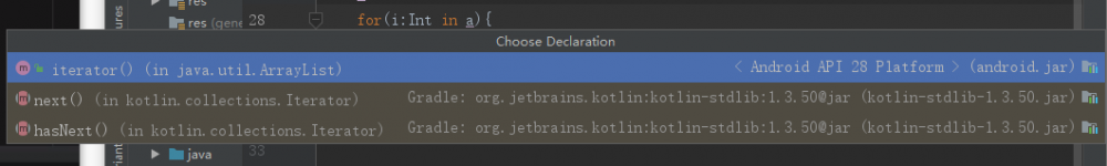 for 循环的 in 把鼠标点击 in 可见其循环机制实际上是 iterator 机制, hasNext() 跟 next() ,判断有没有下一个值,有就获取