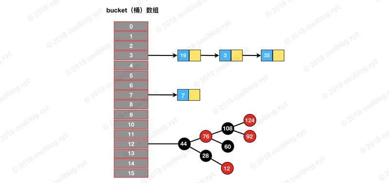 上面就是 HashMap 底层数据结构的原理,HashMap 基本操作就是对拉链式散列算法基本操作的一层包装。不同的地方在于 JDK 1.8 中引入了红黑树,底层数据结构由 数组+链表 变为了 数组+链表+红黑树 ,不过本质并未变。