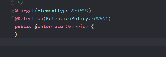 看一下 @Override 注解 其主要作用是编译时进行格式检查。点进去看一下 @Override 实现。