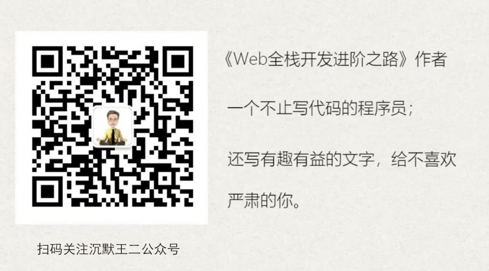 养成好习惯!如果觉得这篇文章有点用的话, 求点赞、求关注、求分享、求留言 ,这将是我写下去的最强动力!如果大家想要第一时间看到二哥更新的文章,可以扫描下方的二维码,关注我的公众号,回复「java」再送你一份精选电子书大礼包,包含这 10 年来我读过的最优质的 Java 书籍。我们下篇文章见!