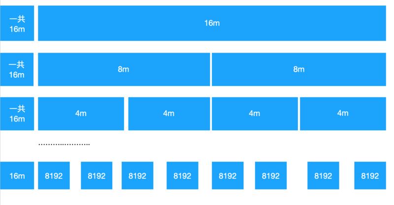 maxOrder 默认11 : 完全二叉树的深度(根节点是第0层, 所以客观来说的一共有 maxOrder+1 层) pageSize 默认8192 (8k) : 上面完全二叉树的最底层的叶子结点 page 的默认大小 pageShifts 默认13: 这个是 pageSize 的对数, 2^pageShifts = pageSize , pageSize 默认为 8192, 所以这个默认值为 13 chunkSize 默认 16m(pageSize * maxOrder): 这个是每个 chunk 的大小, 就是下面 chunk图 的每一层的大小 一个page里面的最小划分单位为16byte, 16这个数字很重要, 后续有几个关键计算的地方使用到 chunk 的结构 ~~~~