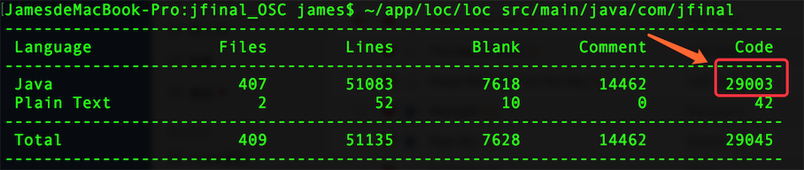 jfinal 作为一个应用开发框架,拥有 MVC + AOP + ORM + Template Engine 核心模块,不依赖于任何第三方,体量仅有 732KB,代码量不到三万仅有 29003 行: