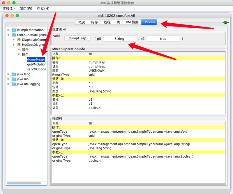 我用了三次暂停,分别标记了三个节点,然后通过使用 jconsole 中的 mbean 工具类获取堆内存的转储文件,其他方法请参考往期文章 如何获取JVM堆转储文件 ,大家也可以在代码中直接使用