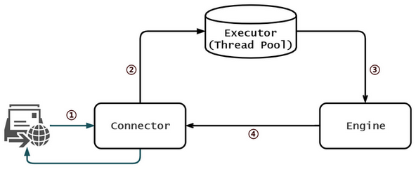 项目是 Spring Boot 开发的,默认用 jar 包部署,实际上就是运行在一个内嵌的 tomcat 中,所以下面就简单理一下 tomcat 处理并发请求的基本流程。这里不具体涉及到相关的组件以及源码,仅仅是梳理过程。