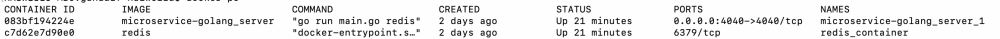docker-compose up Starting redis_container ... done Starting microservice-golang_server_1 ... done Attaching to redis_container, microservice-golang_server_1 redis_container | 1:C 22 Dec 2019 13:11:10.761 # oO0OoO0OoO0Oo Redis is starting oO0OoO0OoO0Oo redis_container | 1:C 22 Dec 2019 13:11:10.761 # Redis version=5.0.7, bits=64, commit=00000000, modified=0, pid=1, just started redis_container | 1:C 22 Dec 2019 13:11:10.761 # Warning: no config file specified, using the default config. In order to specify a config file use redis-server /path/to/redis.conf redis_container | 1:M 22 Dec 2019 13:11:10.763 * Running mode=standalone, port=6379. redis_container | 1:M 22 Dec 2019 13:11:10.763 # WARNING: The TCP backlog setting of 511 cannot be enforced because /proc/sys/net/core/somaxconn is set to the lower value of 128. redis_container | 1:M 22 Dec 2019 13:11:10.763 # Server initialized redis_container | 1:M 22 Dec 2019 13:11:10.763 # WARNING you have Transparent Huge Pages (THP) support enabled in your kernel. This will create latency and memory usage issues with Redis. To fix this issue run the command 'echo never > /sys/kernel/mm/transparent_hugepage/enabled' as root, and add it to your /etc/rc.local in order to retain the setting after a reboot. Redis must be restarted after THP is disabled. redis_container | 1:M 22 Dec 2019 13:11:10.764 * DB loaded from disk: 0.000 seconds redis_container | 1:M 22 Dec 2019 13:11:10.764 * Ready to accept connections server_1 | Prepare to serve