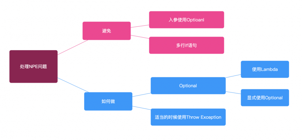 工作中经常会遇到NPE(NullPointException)问题怎么处理,得到最多的回答就是Optional来处理,但是 单纯的使用Optional并不能很好的解决业务中的NP问题 。所以整理出日常工作中处理NPE问题的思路,供参考。