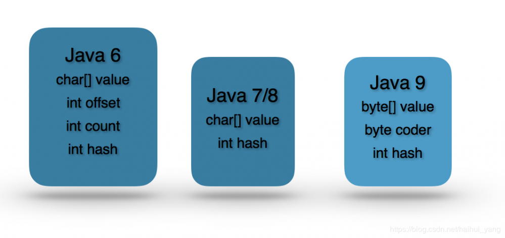 在 Java 9 发布后, String 的成员变量又做了一次调整: char[] value 、 byte coder 、 int hash ;