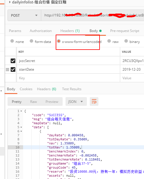 选择body中使用x-www-form-urlencoded。这样传过去的参数样子是: