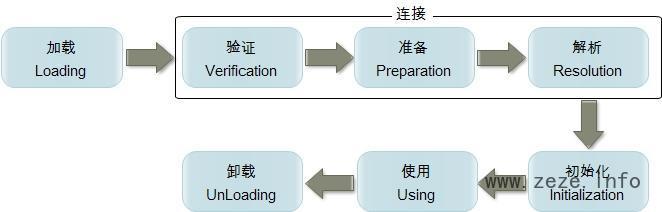 Single single = Single.getInstance(); 调用了类的 Single 调用了类的静态方法,触发类的初始化 single=null count1=0,count2=0 single 赋值为 new Single() 调用类的构造方法 count=1;count2=1 count1 与 count2 赋值,此时 count1 没有赋值操作,所有 count1 为1,但是 count2 执行赋值操作就变为0 类从被加载到虚拟机内存中开始,直到卸载出内存为止,它的整个生命周期包括了:加载、验证、准备、解析、初始化、使用和卸载这7个阶段。其中,验证、准备和解析这三个部分统称为连接(linking)。