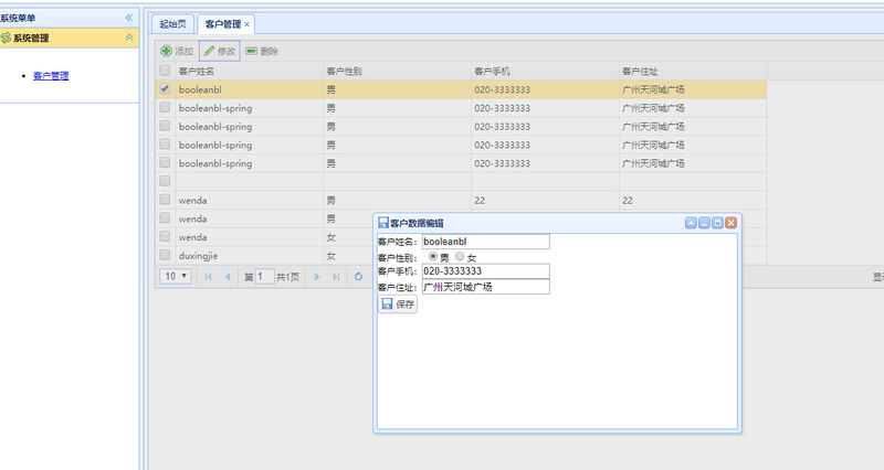 我们需要做一个客户系统,使用者可以在系统上面保存、编辑、删除、客户信息。
