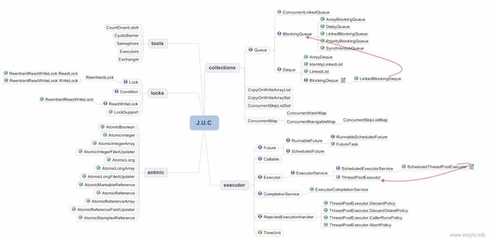 谈到并发编程,基本上都会想到JDK 的 JUC 工具包,它包含 锁,并发工具类,原子类,线程池,还有阻塞队列,这是从网上找的一个大致的知识体系。