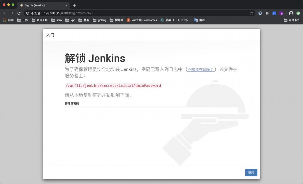 在服务器上输入 cat /var/lib/jenkins/secrets/initialAdminPassword