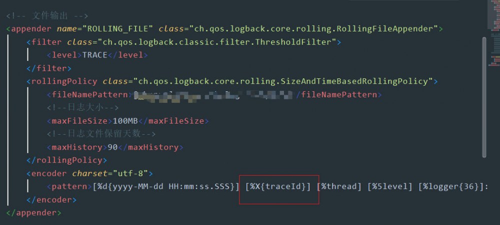 在日志配置文件中修改输出格式,增加TraceID字段的打印