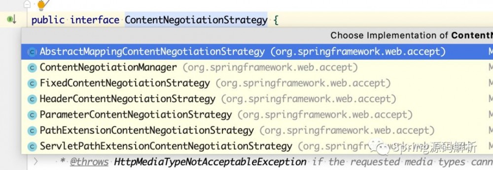 上边这些strategy实现类以组合模式的形式封装成ContentNegotiationManager,对外提供逻辑接口。