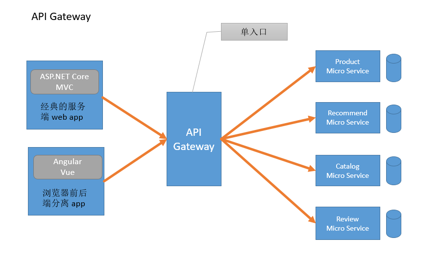 API网关,顾名思义,是统一管理API的一个网络关口、通道,是整个微服务平台所有请求的唯一入口,所有的客户端和消费端都通过统一的网关接入微服务,在网关层处理所有的非业务功能。下图为微服务架构的简单示意图,网关起到的作用一目了然。