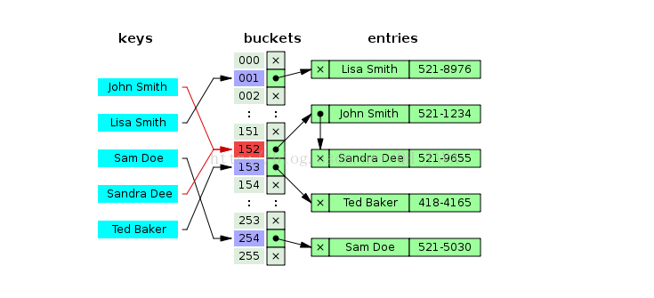 也可以这样理解,一个entry 类型的存储链表的数组。数组的索引位置就是一个个桶的索引地址。