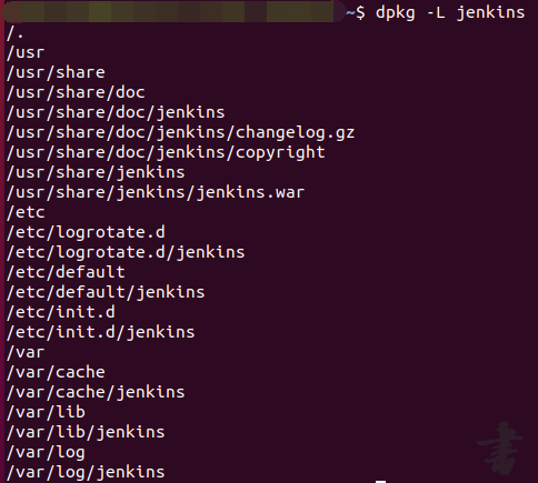 安装后使用 dpkg -L jenkins 命令查看安 jenkins 相关文件如下
