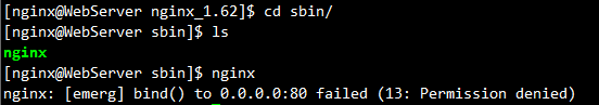当我们想用80端口的时候,如果不用root用户启动就会报错.