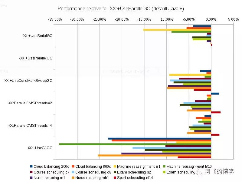 每个垃圾回收器和 Java8 默认的 ParallelGC 的对比如下图所示: