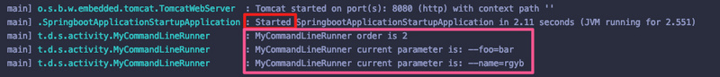 java -jar springboot-application-startup-0.0.1-SNAPSHOT.jar --foo=bar --name=rgyb