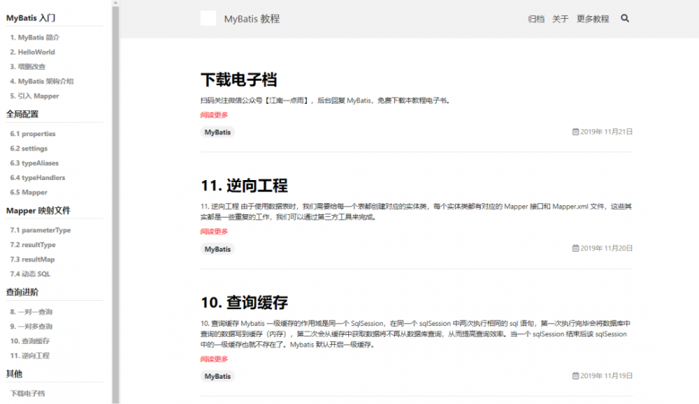 和前面的教程一样,这个 MyBatis 教程松哥也提供了线上版和离线版,线上版地址: