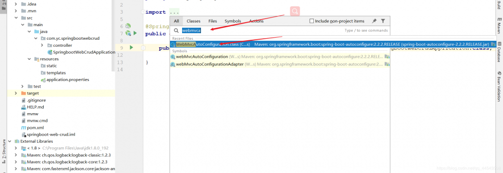 SpringBoot中的SpringMVC配置功能都是在 WebMvcAutoConfiguration 类中, xxxxAutoConfiguration 就是帮我们给容器中自动配置组件的;idea全局搜索的快捷键是两次 shift ,查看 webMvcAutoConfiguration 查看 webMvc 自动配置类