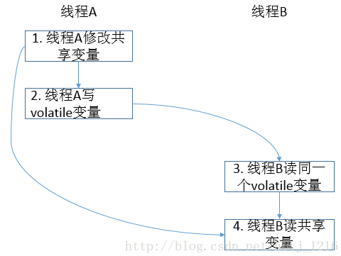 说明:假设线程A先执行writer()方法,随后另一个线程B执行reader()方法。下面我们通过这两个线程的交互来说明这两个规则。