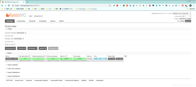 # RABBITMQ_DEFAULT_USER:用户名,RABBITMQ_DEFAULT_PASS:密码 这里修改为自己的即可 docker run -d --name rabbitmq -p 5672:5672 -p 15672:15672 -v `pwd`/rabbitmq/data:/var/lib/rabbitmq --hostname my-rabbit --restart=always -e RABBITMQ_DEFAULT_VHOST=my_vhost -e RABBITMQ_DEFAULT_USER=admin -e RABBITMQ_DEFAULT_PASS=admin rabbitmq:3-management