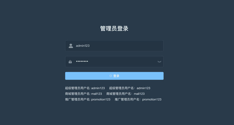 使用默认的账户即可登陆。完成后,会进入到后台管理页面: