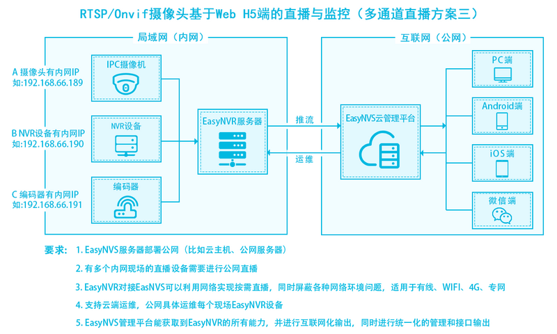 因使用区域受限、实施成本和入口门槛高,传统监控行业和摄像机直播系统无法借力优质云资源搭建属于自己的监控云平台,客户终端出不了监控的内网,无法做到公网实时监控与录像回放,更别说用手机、微信、H5、无插件随时随地看视频了,EasyNVR已经很好的解决了以上痛点。
