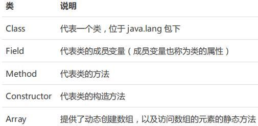 IoC 内部核心原理就是反射技术,当然这里面还涉及到 Bean 对象的初始化构建等步骤,这个在后面的生命周期中讲,这里我们需要了解 Java 中反射是如何做的就好。这里主要说明下主要的相关类和可能面试问题转向,具体的 API 实现需要自己去看。