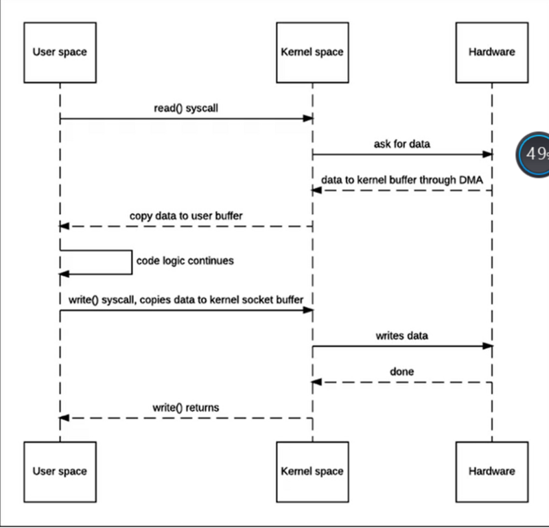 b. 接着DMA从内核read buffer将数据拷贝到网卡接口buffer