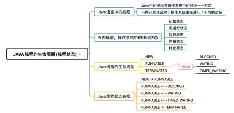 Java 线程的生命周期,即 了解线程各个节点状态的转换机制 。了解 Java 线程生命周期有助于跟踪分析线程的状态,通过分析线程 dump 来解决死锁、饥饿、活锁的问题。