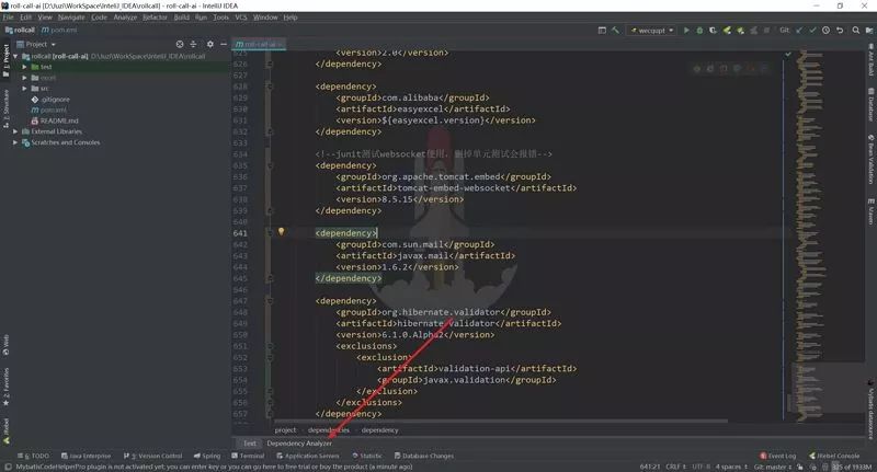 在插件安装好之后,我们打开pom.xml文件,在底部会多出一个Dependency Analyzer选项