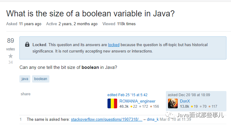 在 Java 中,boolean 类型占用多少空间呢?刚才在 CSDN 上看了一下,一个很老的帖子里有人讨论来着,有人说 1 bit ,有人说 1 byte , 也有人说 4 bytes ,那到底是多少呢?