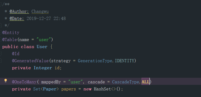 @OneToMany(mappedBy = "user", cascade = CascadeType.ALL,fetch = FetchType.LAZY)
