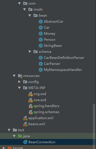 编写 Spring.handlers 和 Spring.schemas 文件,默认位置放在工程的META-INF文件夹下。