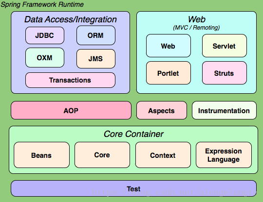 还有其他一些重要的模块,像 AOP,Aspects,Instrumentation,Web 和测试模块,它们的细节如下: