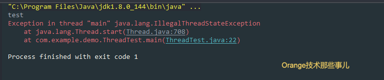很明显答案是不能,我们可以看到第二次启动就报错了,直接看堆栈信息就能看到是因为threadStatus != 0,也就是说线程在一次使用生命周期后,状态不会被重置为0,也就是初始态,只能被使用一次