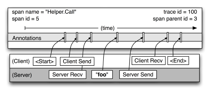 span是构成调用树的最小单元。通常来说包括下面几个部分,通常也会被一个唯一id标识: