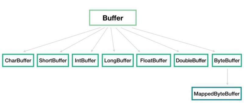 一个Buffer本质上是内存中的一块,可以将数据写入这块内存,也可以从这块内存中读取数据。JavaNIO中定义了七种类型的Buffer: