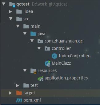 3、配置文件:application.properties,Spring boot崇尚简约,所以基本上没有配置文件,这是唯一的一个必须的配置文件了。此处我只配置了Web项目启动的端口。