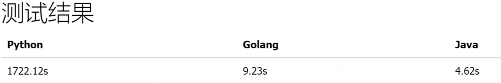 前两天我看到了一篇文章,测试Java和Go和Python的性能,其测试内容是一个排序,排序一亿次,然后看那个语言耗时最短,我先贴一下这个文章的测试结果,Java竟然比Go快了一倍不止,Go不是号称接近C的性能吗,难道?结尾我会把我看的这篇文章链接共享出来,接下来听我分析,